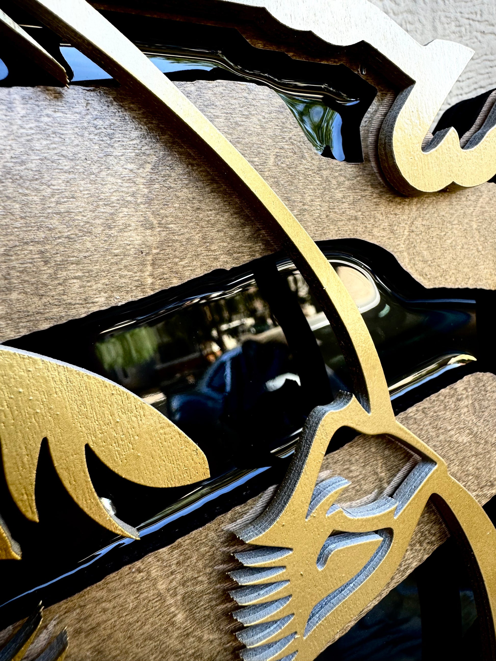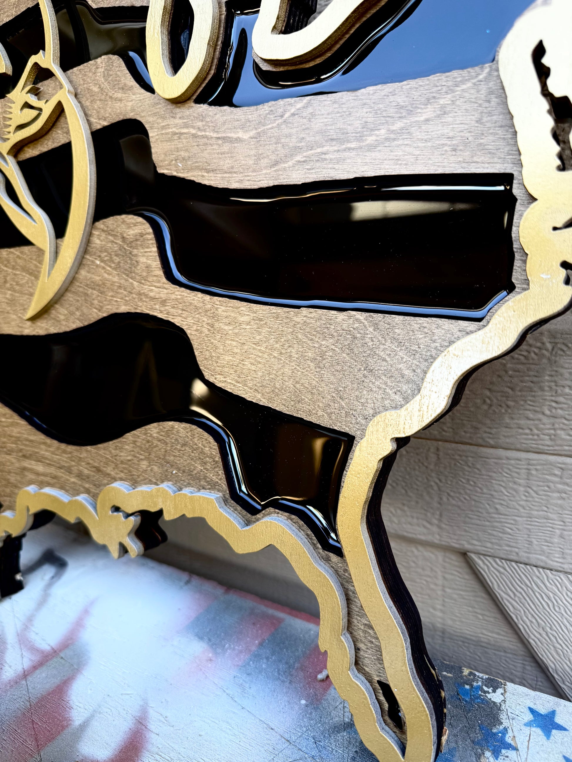 30" Tri-Layer Birch Wood USA Wall Art with Golden Bald Eagle Cutout & Epoxy Resin Inlay – Patriotic Wooden Decor
