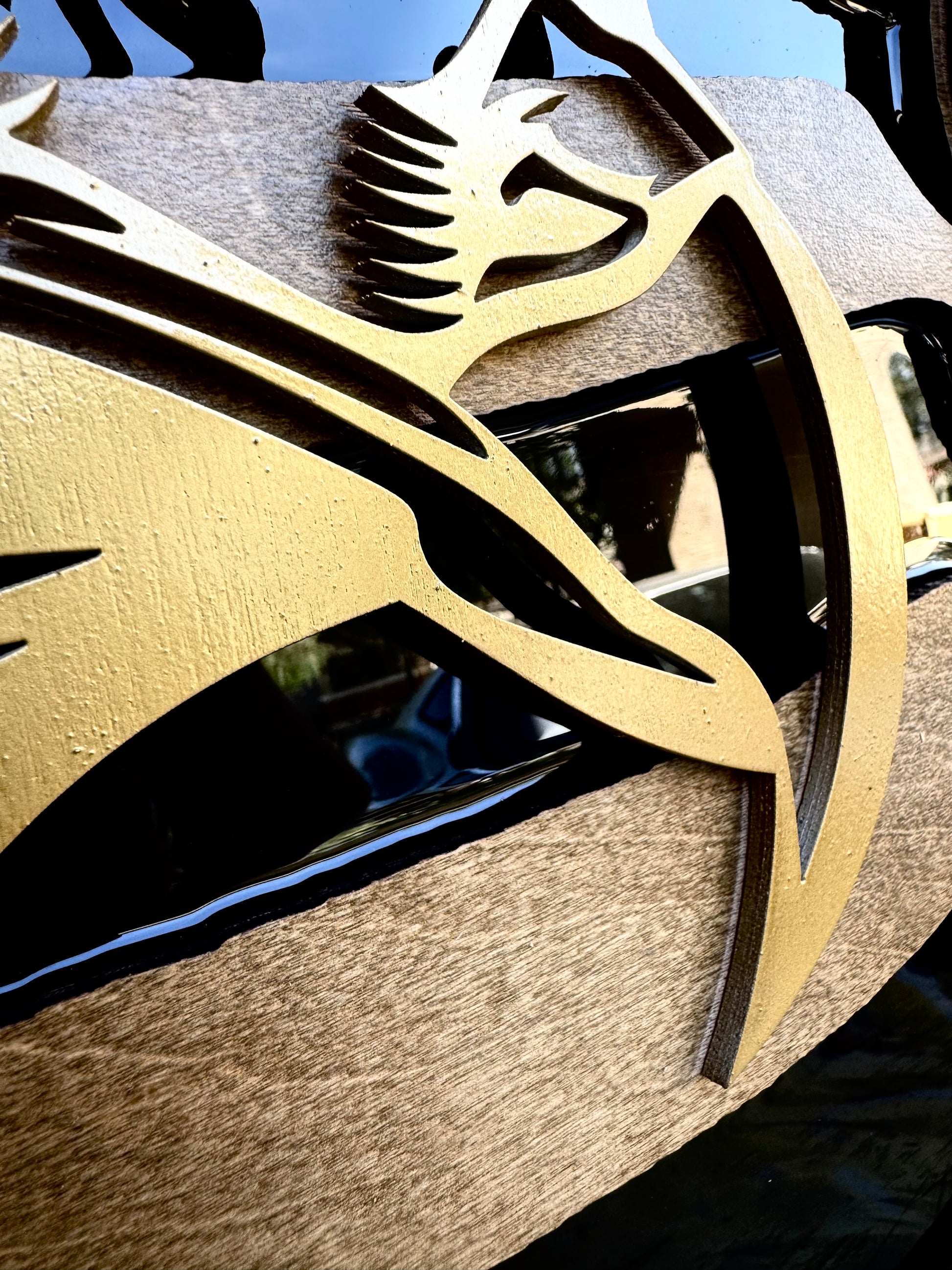 Show your American pride with this stunning 30" Tri-Layer Stained Birch Wood USA Wall Art featuring a golden painted majestic Bald Eagle and epoxy resin inlay. Handcrafted from high-quality birch plywood, this patriotic piece blends natural wood grain with precision laser-cut detailing to create a bold and dimensional tribute to the USA.