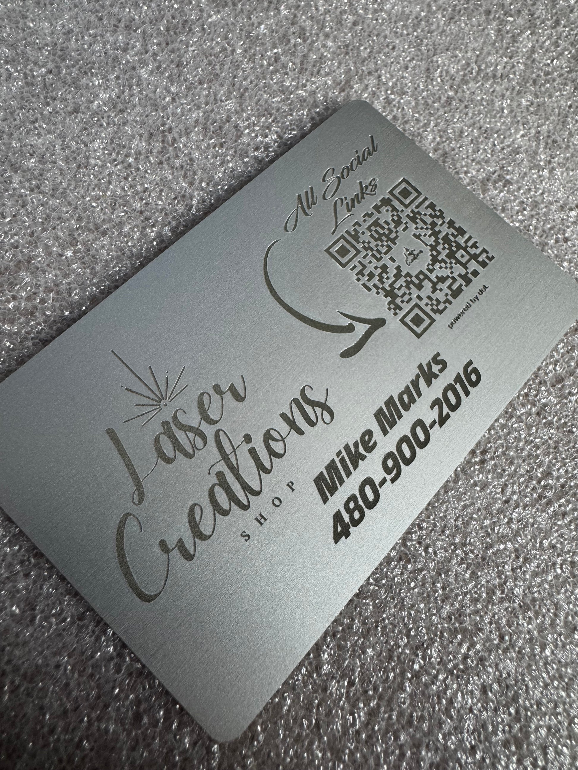**Please email me at mike@lasercreations.shop after you order with any design files, QR codes, mock-ups, etc. that you would like to have on your business card. Once I receive your email I'll work to create a mock-up design for you to approve.**